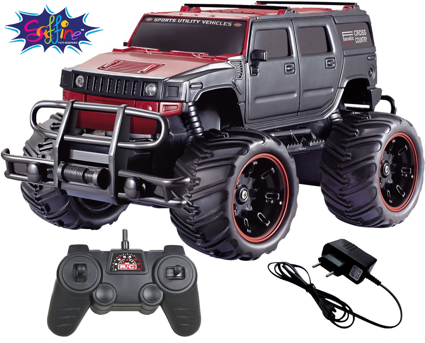 Dominate any type of terrain with the all new Saffire Off Road 1:20 Hummer Electric RTR Monster Car. Featuring a full function transmitter, this awesome Hummer Monster Car allows you to control every single move it makes with ease! But don't think this Remote Controlled Hummer is only good for off roading because this bad boy can haul on and off the road. The body is extremely durable while the huge front and rear bumpers make this RC extremely rugged. The Saffire Off Road 1:20 Monster Hummer Car comes with a rechargeable battery for the truck, a charger and a transmitter! This awesome RC car stand out whether it is night or day! A must have for fans of off roading, get the Saffire Off Road 1:20 Hummer Monster Car today and have a blast!